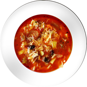 Mutzbraten, Schweinebraten, Kasslerbraten, Spanferkelrollbraten, als Beilage Sauerkraut, Grillplatte mit Hähnchenkeulen, Partyschnitzel und Partyklopsen, Wiener im Röstimantel, Verschiedene Pfannengerichte: Jägerpfanne mit Champignons, Mexikanische Fleischpfanne, Schweinefleischpfanne „Capri“, Gulaschsuppe, Soljanka