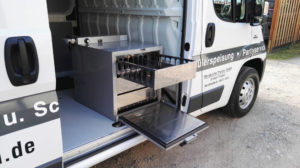 Die Verteilung der Speisen an die verschiedenen Kunden und Einrichtungen erfolgt durch einen eigenen, leistungsfähigen Fuhrpark mit 10 Fahrzeugen. Die Fahrzeuge sind mit Cabo-Warmhalteöfen ausgerüstet, damit die Einzelportionen in den Menüschalen heiß beim Kunden ankommen.