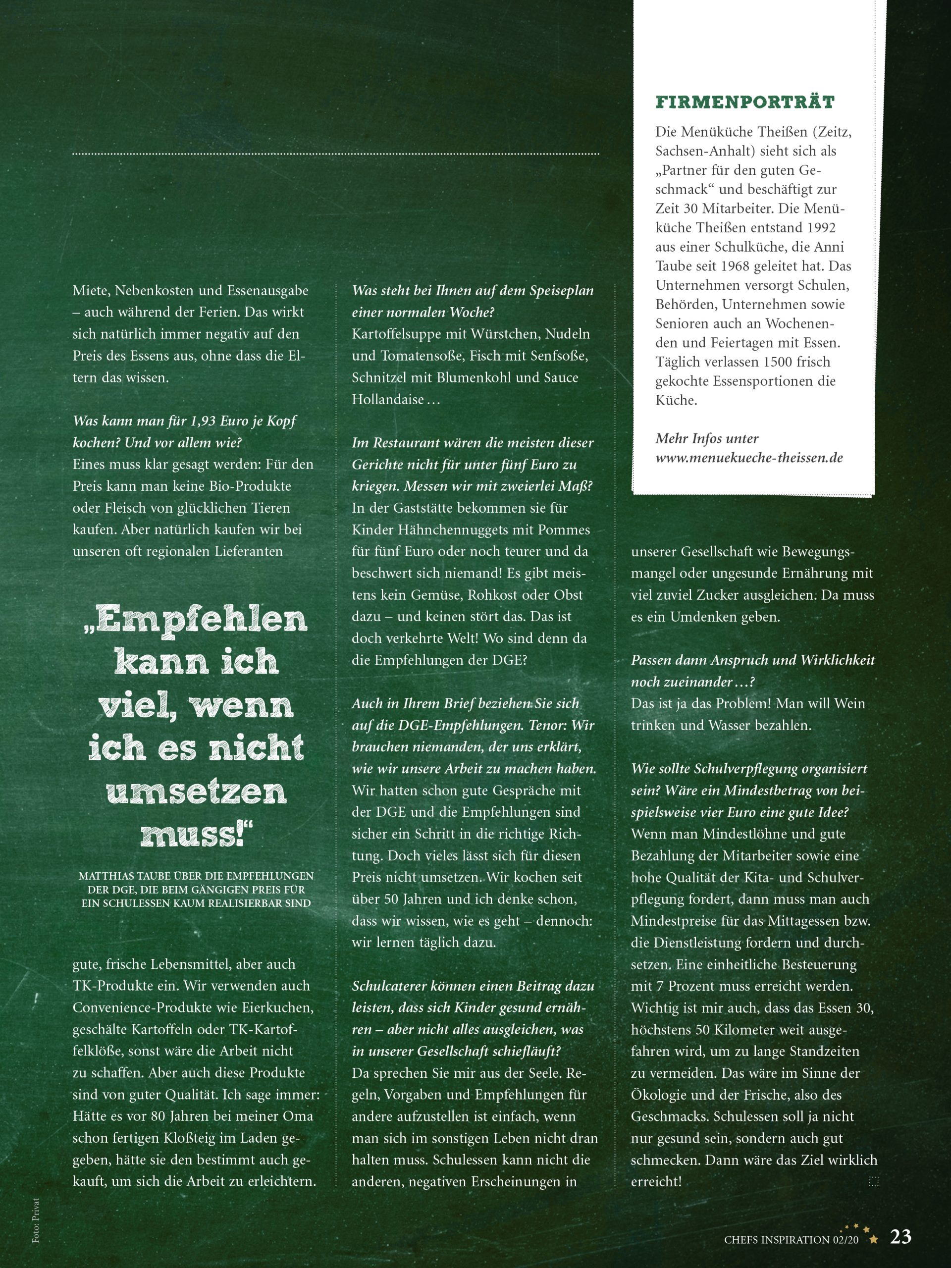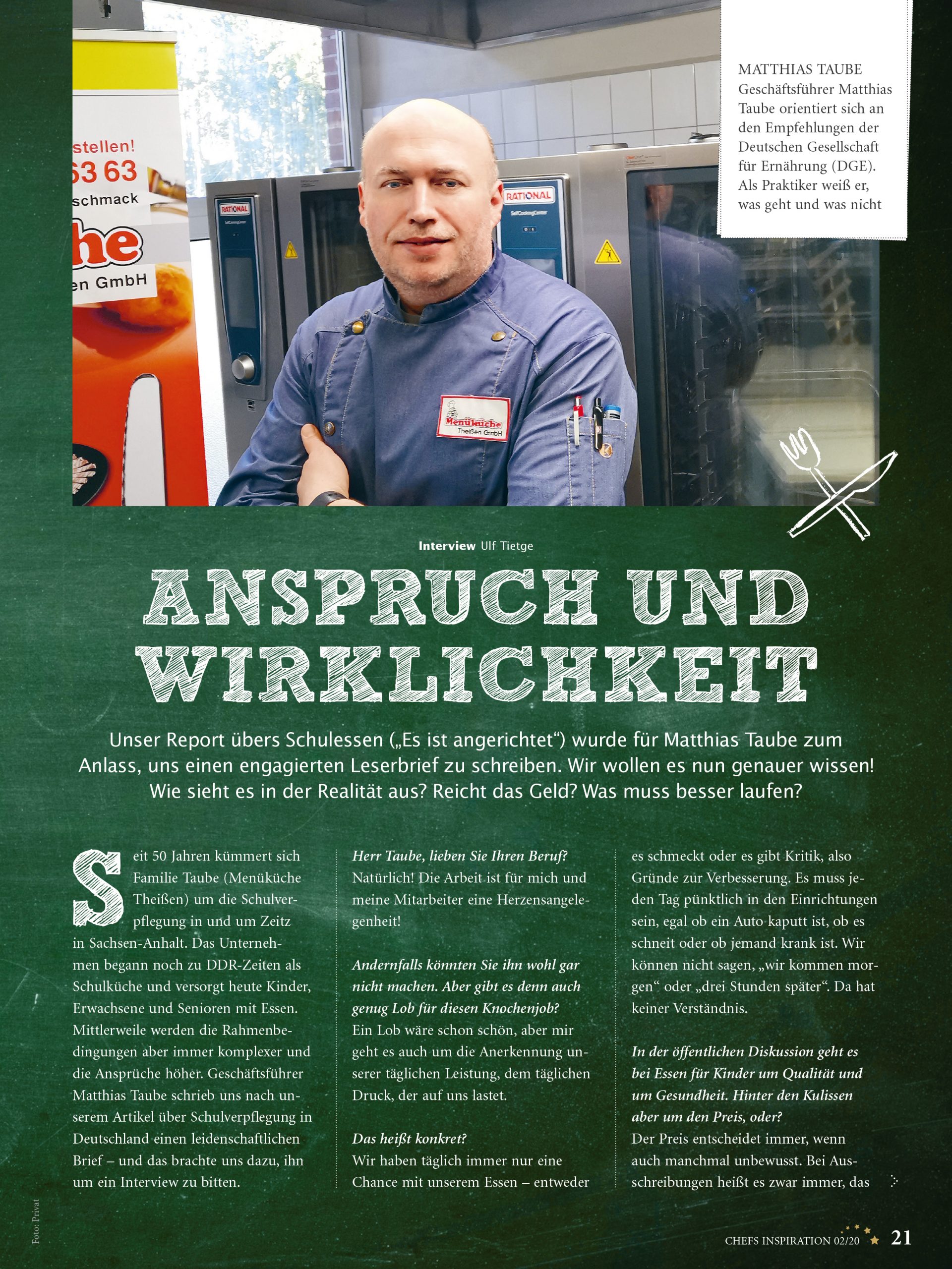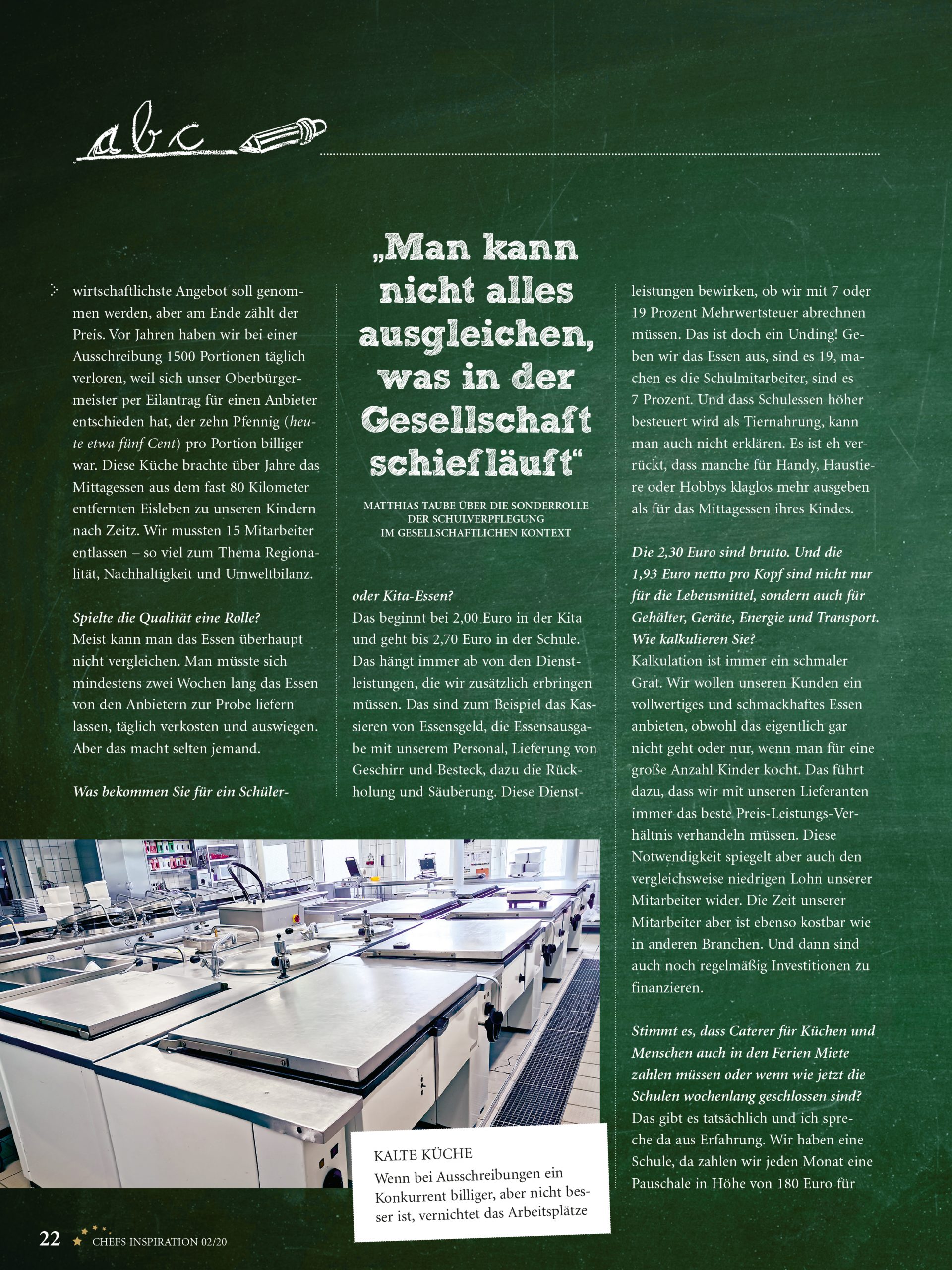 Schulverpflegung: Matthias Taube über Wunsch und Wirklichkeit, Bericht aus dem Magazin „Chefs Inspiration“ Sommer 2020